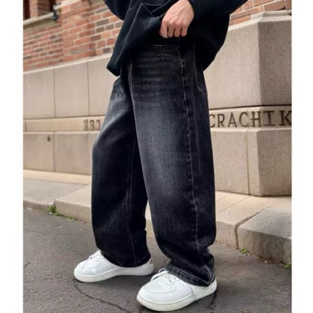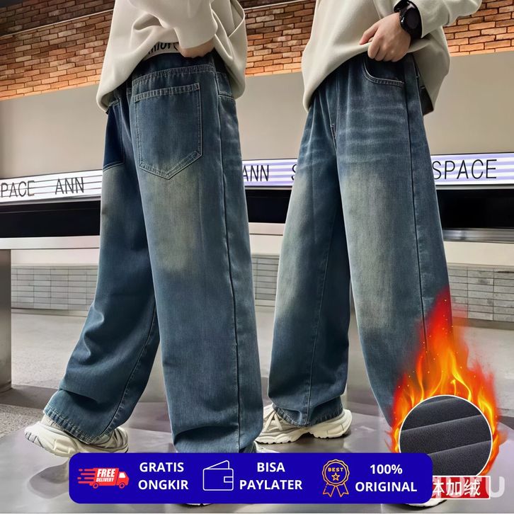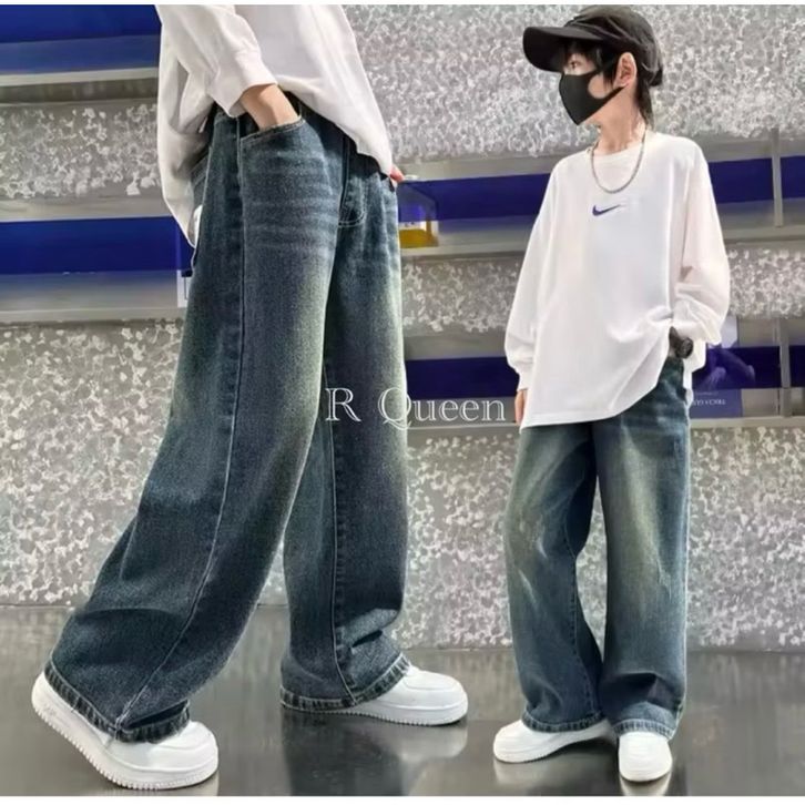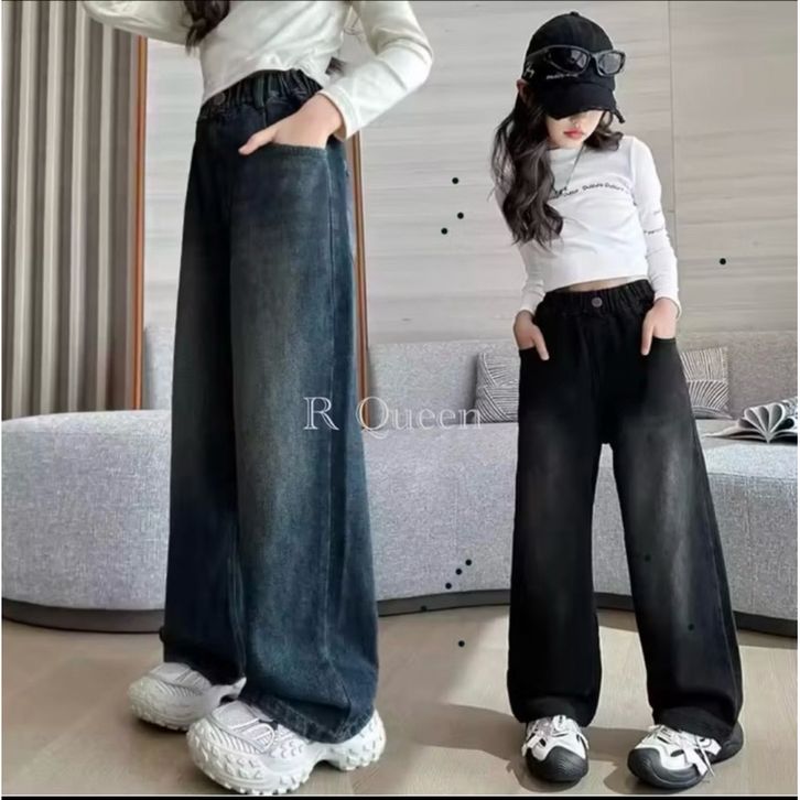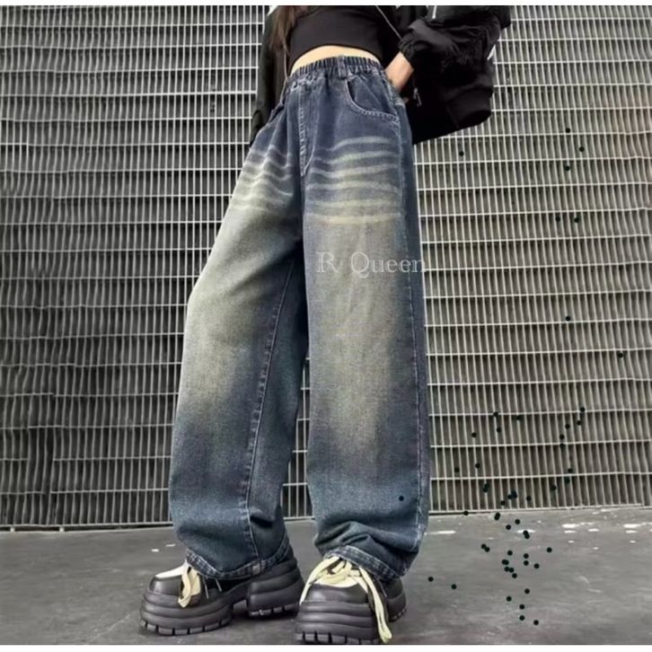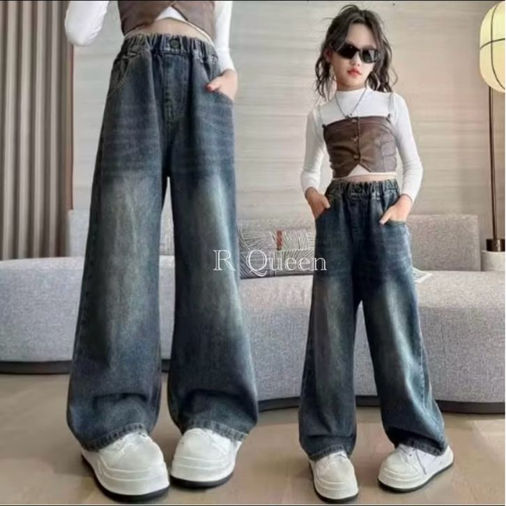 Celana Skena Jeans Anak Retro Wide Leg Whisker Lebar Gombrong Skena Biru Retro Black Wisker Pakaian Fashion Perempuan