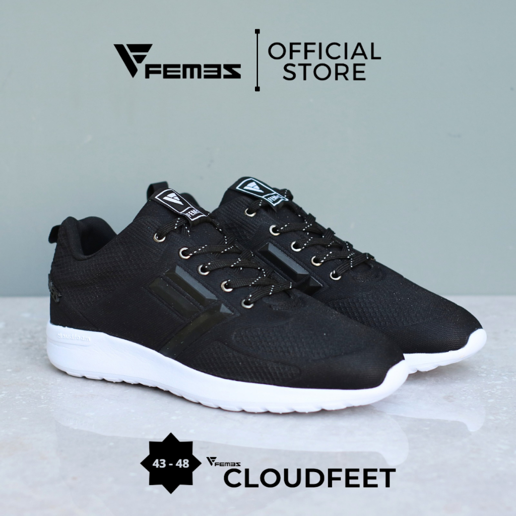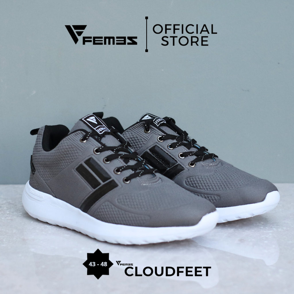 Femez Cloudfeet Sepatu Casual Pria Ukuran Big Size Jumbo 43-48 Abu Hitam Sport Olahraga Sepatu Polos
