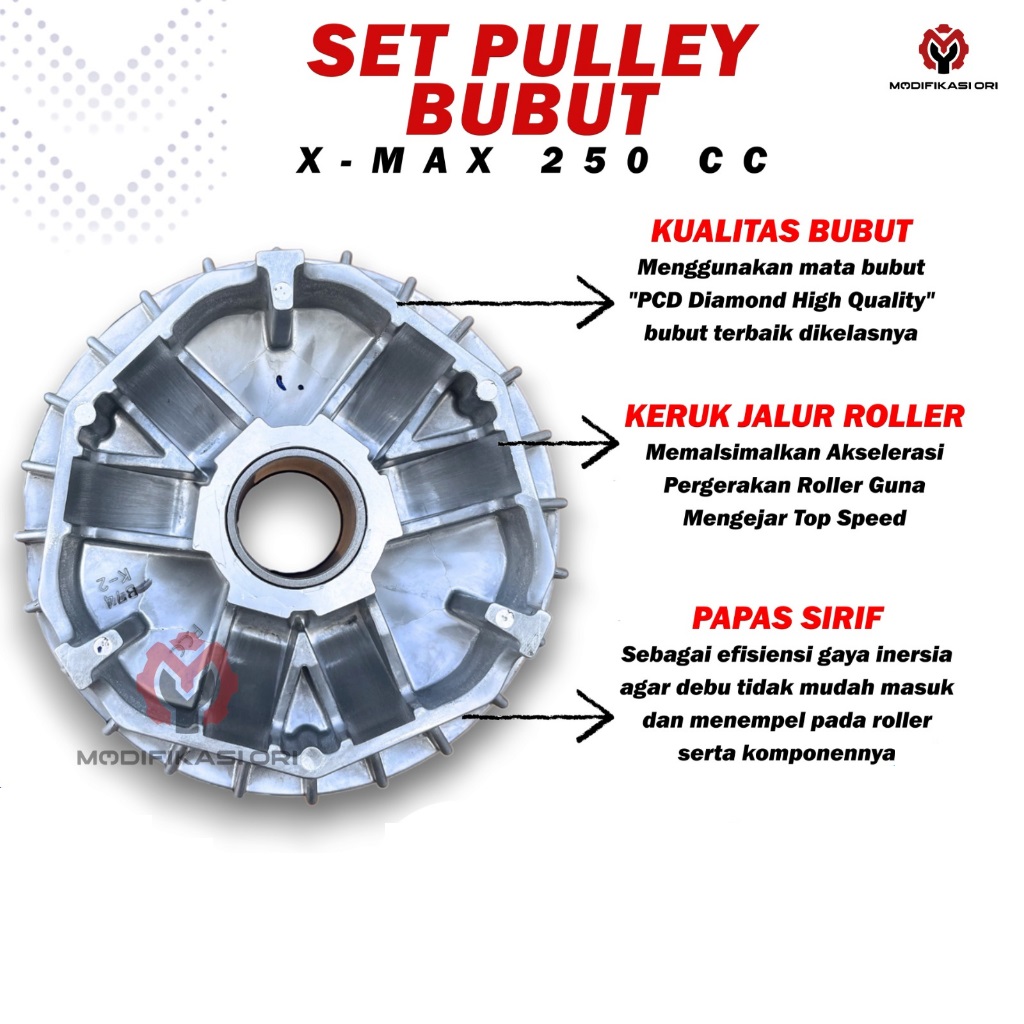 XMAX 250 - Pulley Bubut Rumah Roller Bubut Derajat kemiringan Pulley Derajat Yamaha X max 250 cc Modifikasi Ori Kirian x