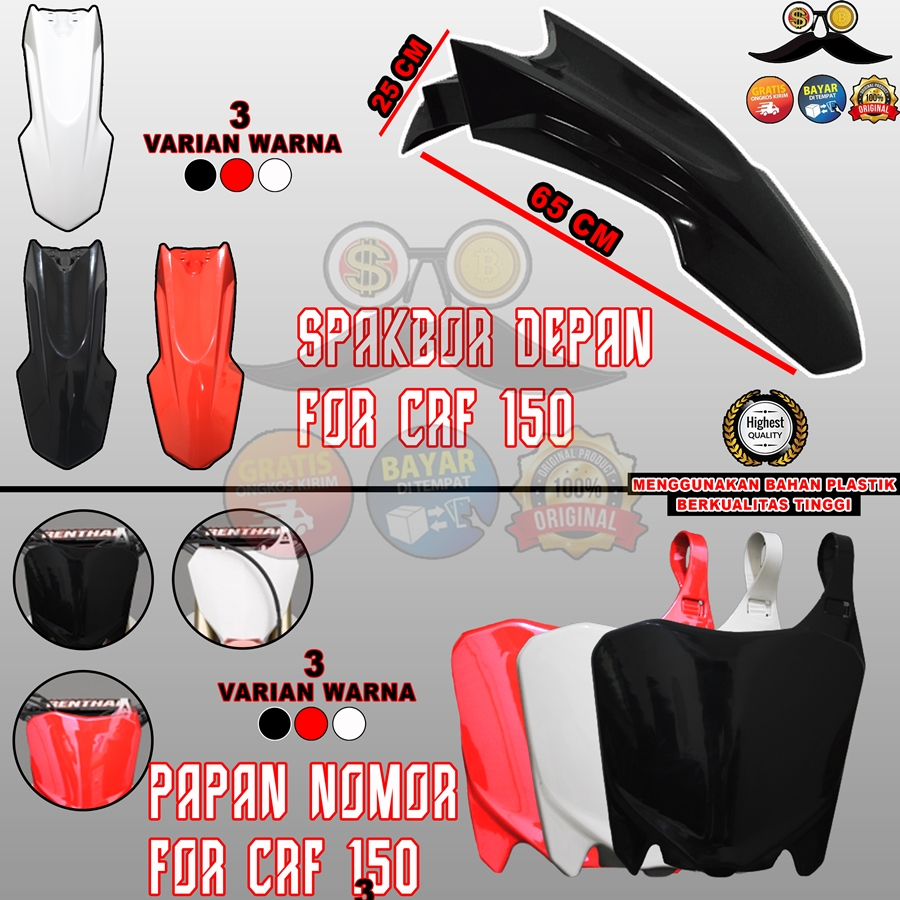 SPAKBOR SET DEPAN PAPAN NOMOR CRF 150 250 MOTOR CROSS TRAIL HONDA SUPERMOTO SUPER MOTO DIRT BIKE PNP