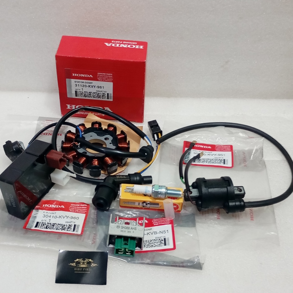 Paket Pengapian 6 Item Spull spul Assy set Beat Karbu Scoopy Spacy karbu KVY Set + Cdi + Kiprok Regulator + Busi