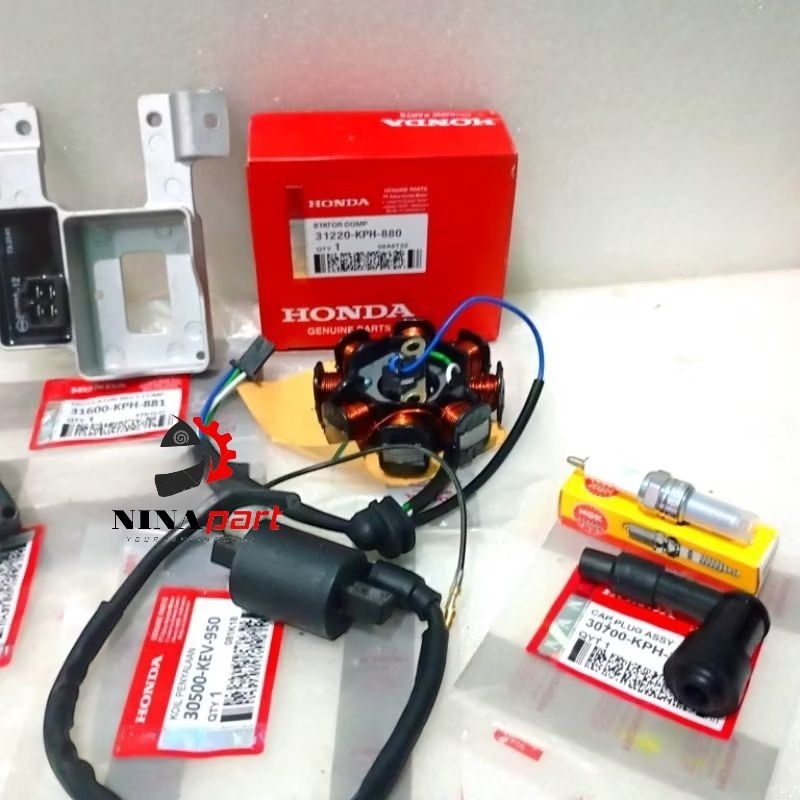 6 item Paket Pengapian Honda Supra x 125 Kharisma Kirana Spull Assy+Cdi++Kiprok Assy+Busi+Tutup Busi