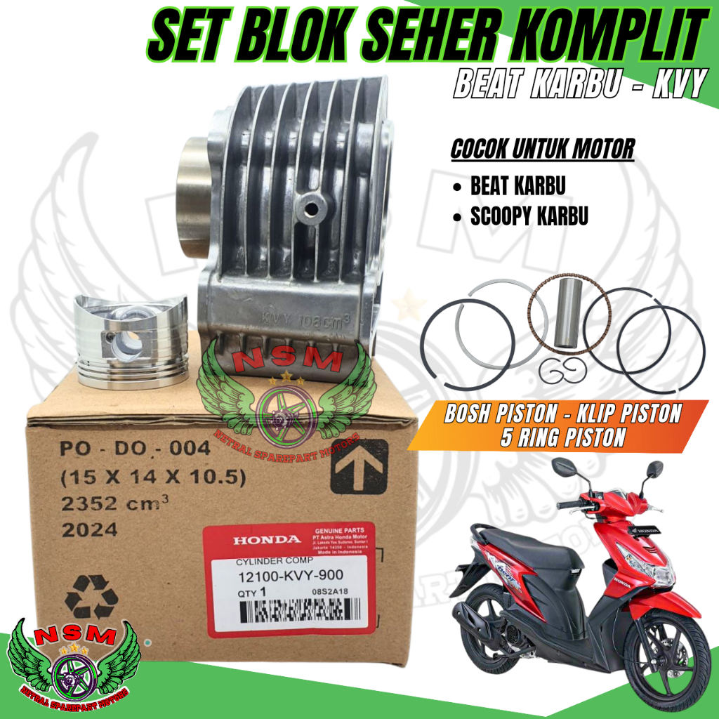 BLOK SEHER KOMPLIT + PISTON KIT BEAT KARBU / SCOOPY KARBU