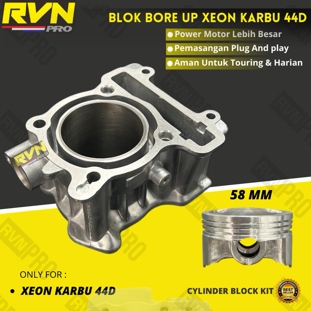 RVN CYLINDER BLOK SEHER BORING KOMPLIT BORE UP 44D XEON KARBU 58 MM 58MM BLOCK SEHER BORUP FREE PAKING ORIGINAL RVN THAI