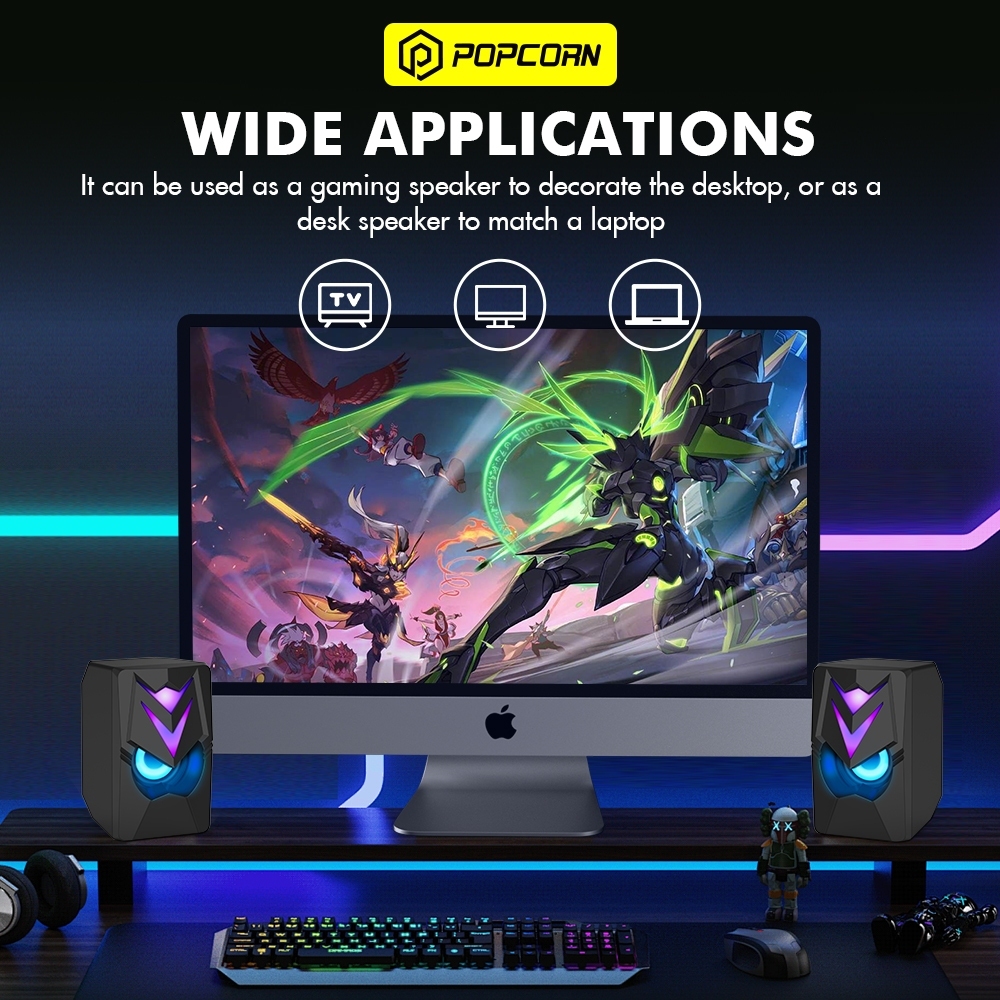 Popcorn CS010 PC Speaker For Laptop Computer Speaker USB Colorful Lighting Effect RGB Gaming Laptop
