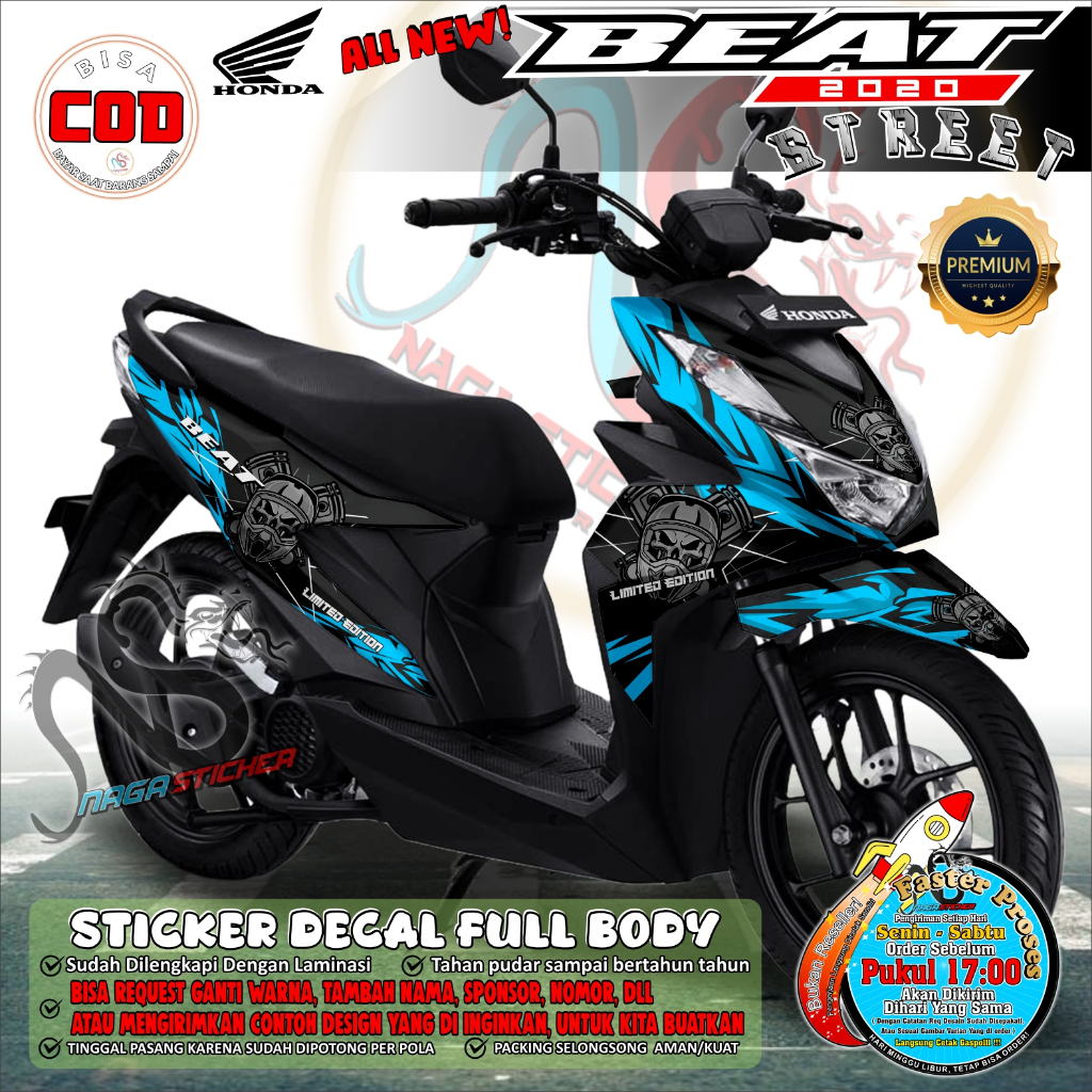 Decal Sticker Full Body Honda Beat Street deluxe 2020 Motif SkullHelm NS4105 Desain Custom