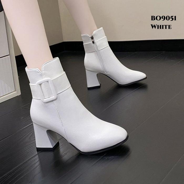 Yjh Sepatu Boots Shoes Wanita Flat Sandal Tinggi 7Cm Hitam Kulit Sintetis Krem Black Beige Ala Korea Style Bo9051 - 36,