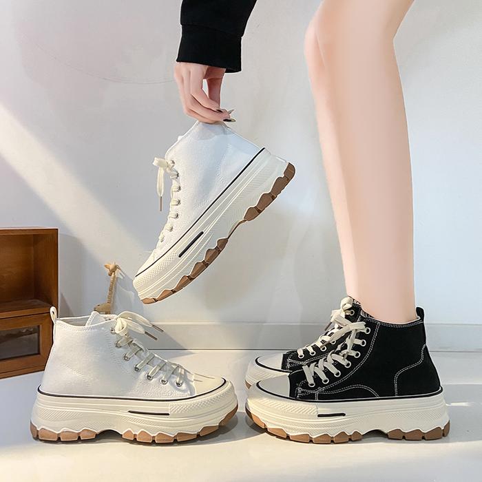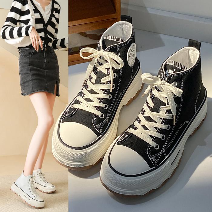 Cani Jimin Sneakers Shoes Sepatu Canvas Wanita Import Korea Kekinian Sepatu Ankle Tinggi 9054 Casual Karet - Black, 37