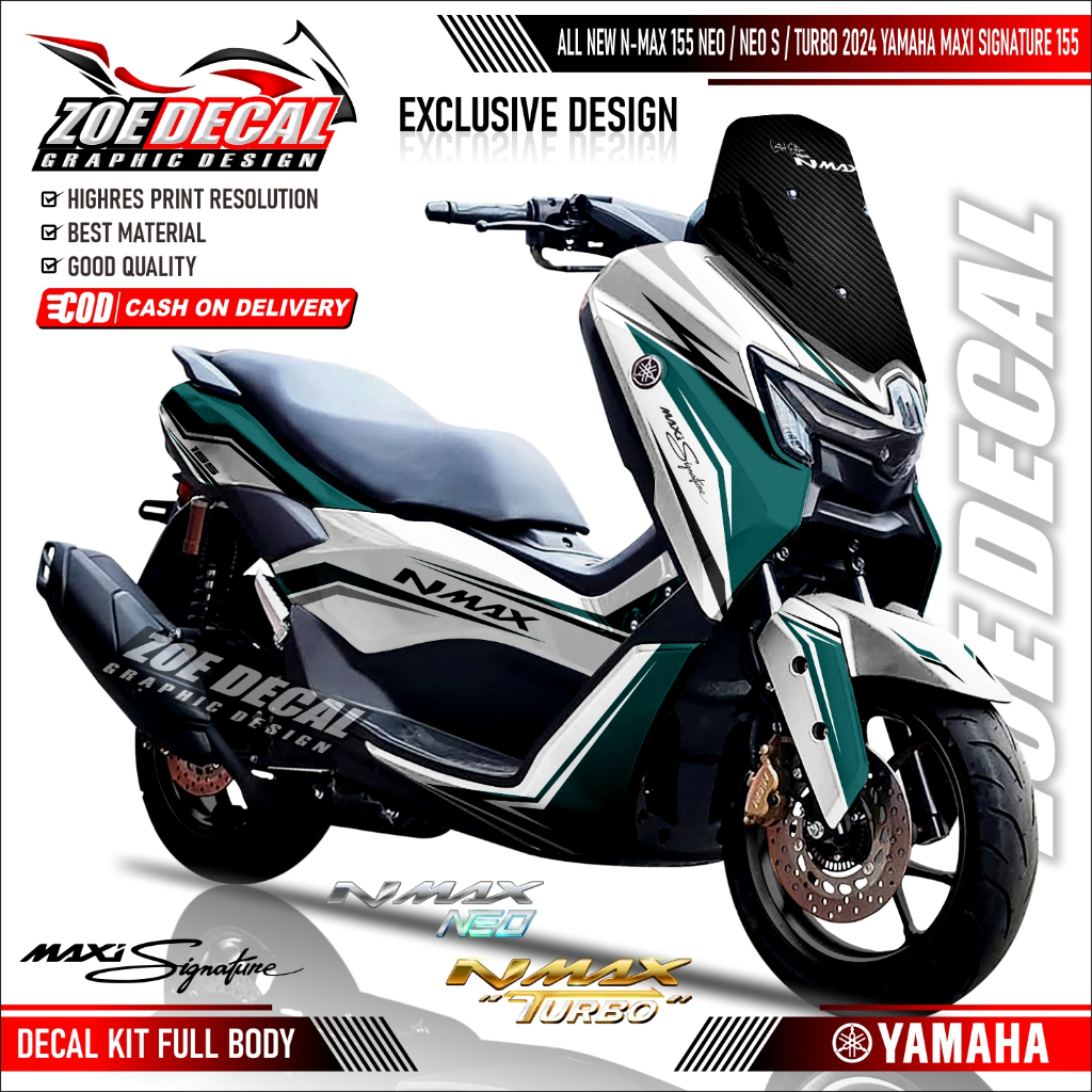 Terbaru Decal Stiker Full Body Yamaha All New NMAX TURBO / NEO / NEO S Motif / Livery MAXI SIGNATURE (PUTIH) RACING Moti