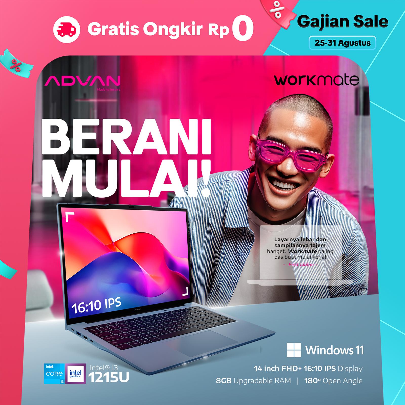 ADVAN Workmate Intel Core i3-1215U 8GB/256GB 14" Inch FHD+ 16:10 IPS WiFi 5 Upgradable Free WIndows 11 Garansi Resmi