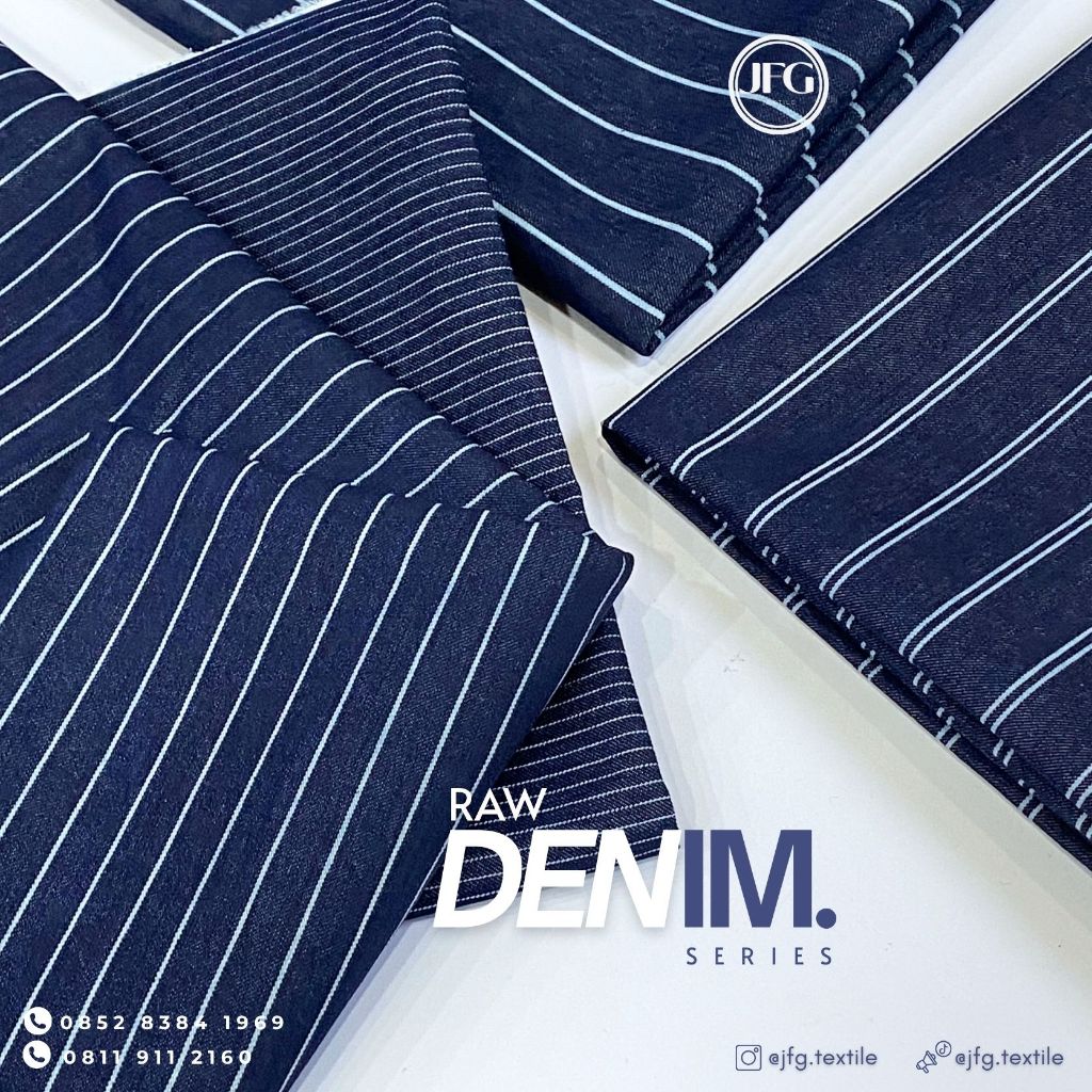 1 Yard Bahan Kain RAW DENIM STRIPE by JFG - KAIN DENIM PRINT STRIPE 8 OZ LEBAR 150CM+
