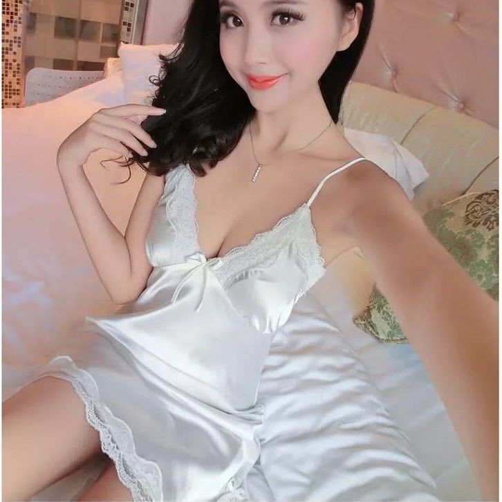 Lingerie dress baju tidur piyama daster wanita korea sexy mini dress women silk satin nightdress