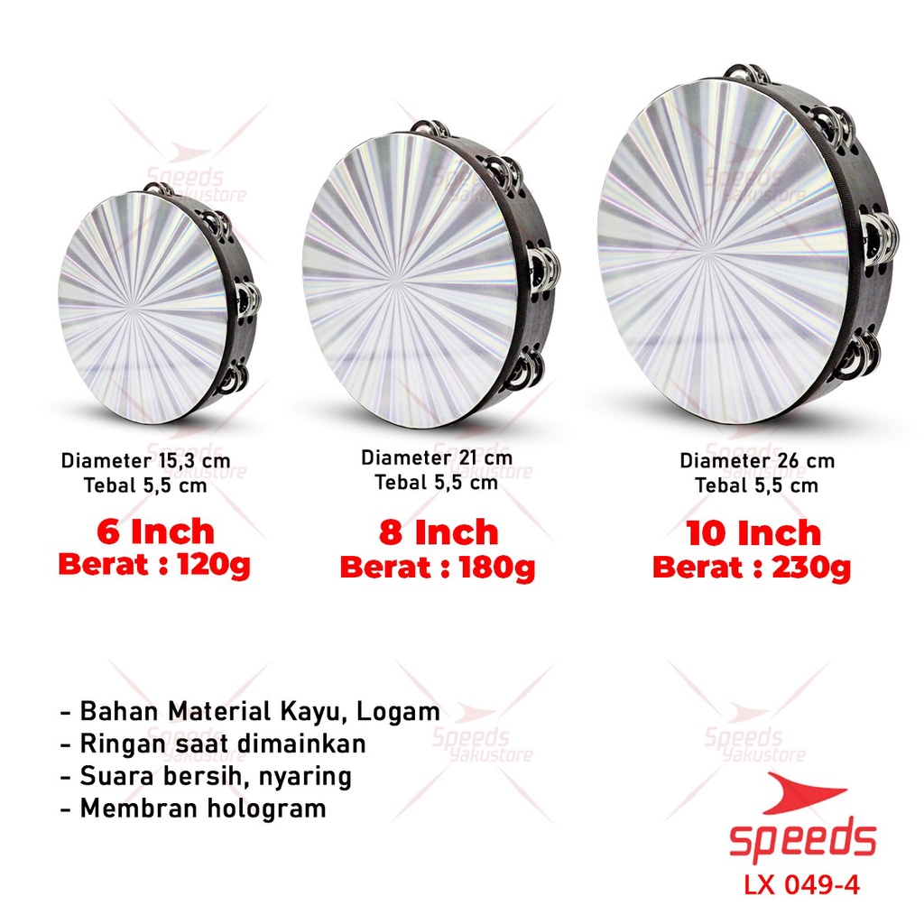 SPEEDS Alat Musik Tamborin Tambourine Hologram Kecrekan Tambourine Tamborine 8 10Inch 049-4