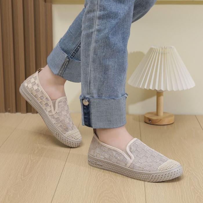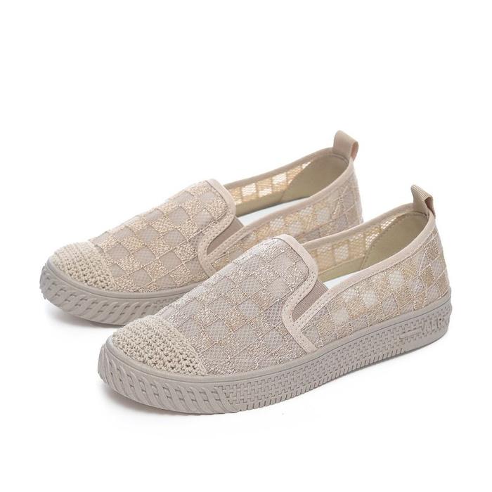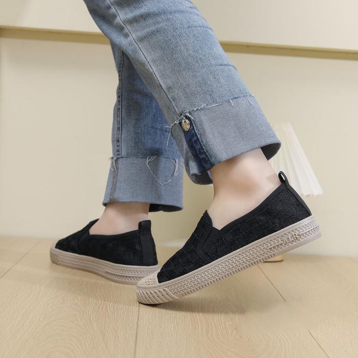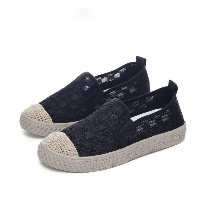 Sepatu Slip On Shoes Loafers Wanita Ibu Mesh Wol Shoes Espadrilles Ori - Black, 36