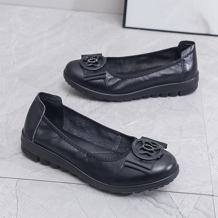 Lurad Sepatu Wanita Slip On Kulit Flat Shoes Sneakers Sport Simple Sepatu Cewek Formal Casual Hitam Fashionable Karet 1