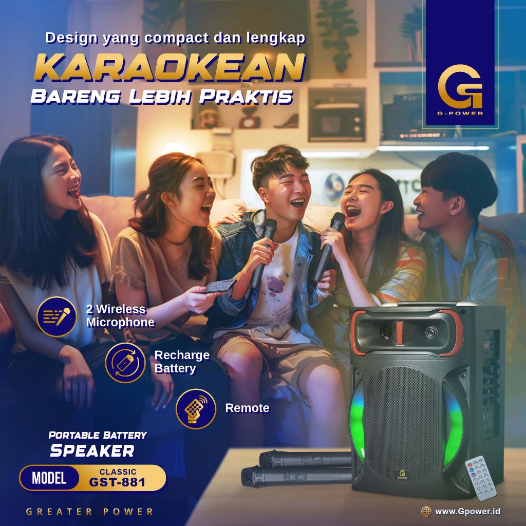 G-POWER Speaker Gst 881 Classic - Speaker Bluetooth Portable / Speaker Karaoke 8 inci