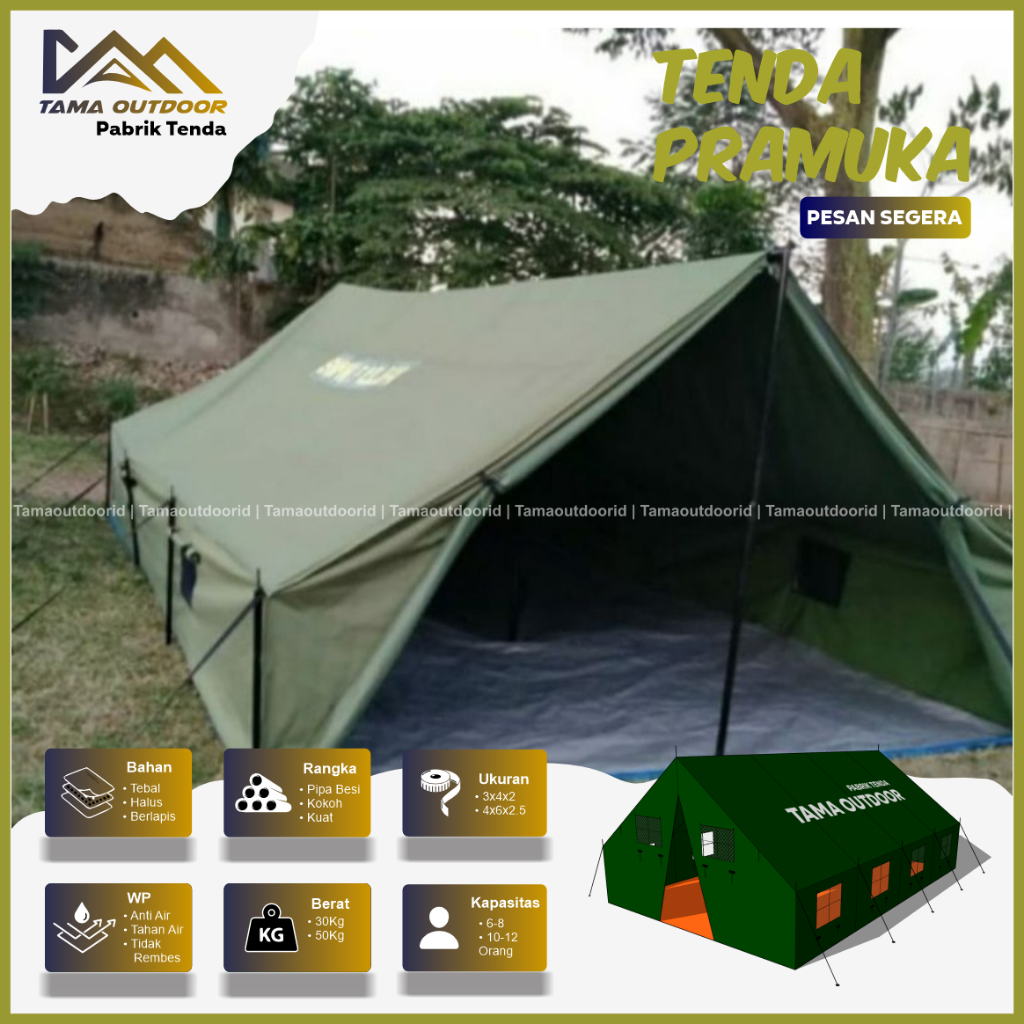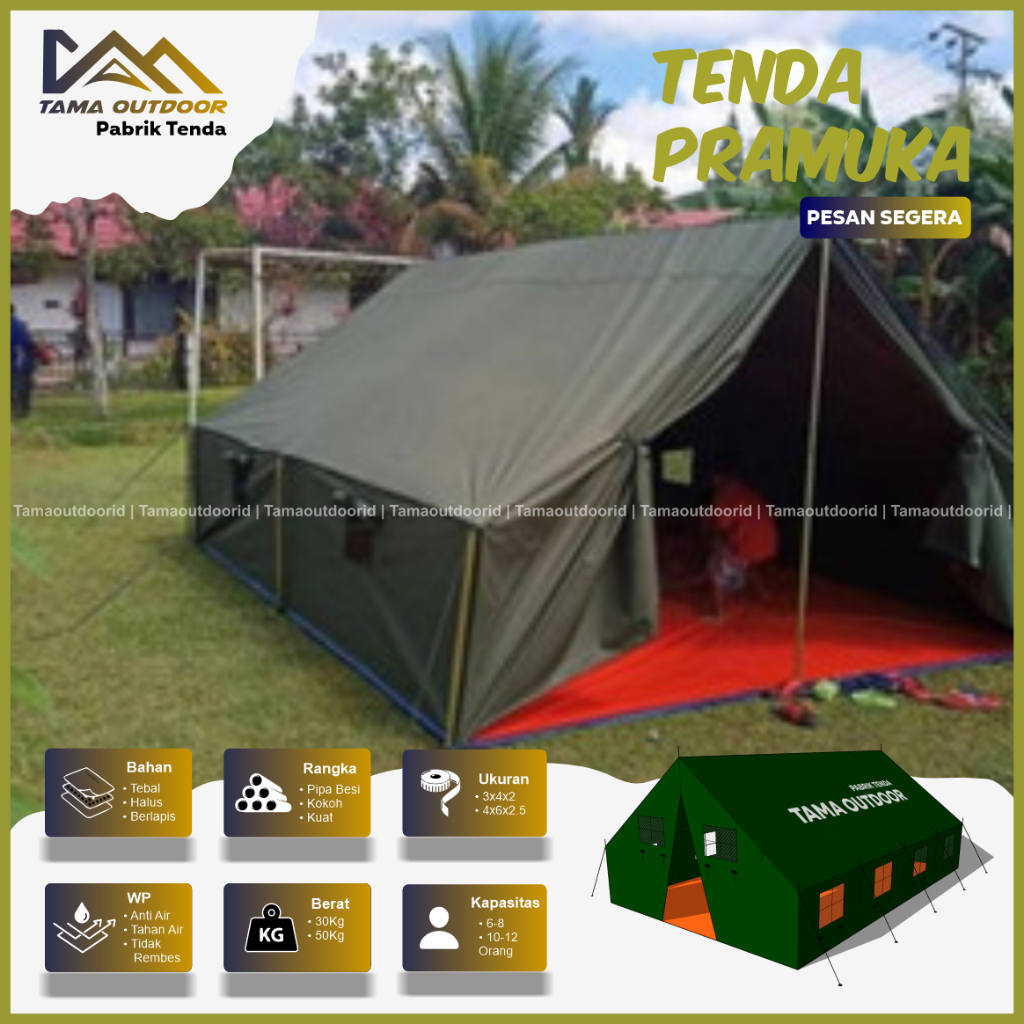 TERLARIS Tenda Pramuka Uk. 3x4 Bahan Tebal Dinier D300 Kap. 8 full set - Tenda Kemah Regu