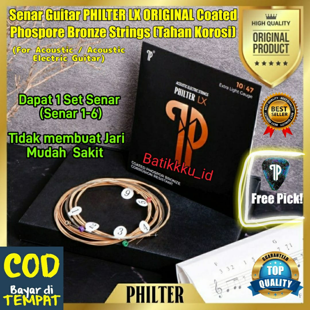Senar Gitar Akustik PHILTER LX ORIGINAL ANTI KARAT 1 SET SENAR 0.10-0.47 FREE PICK