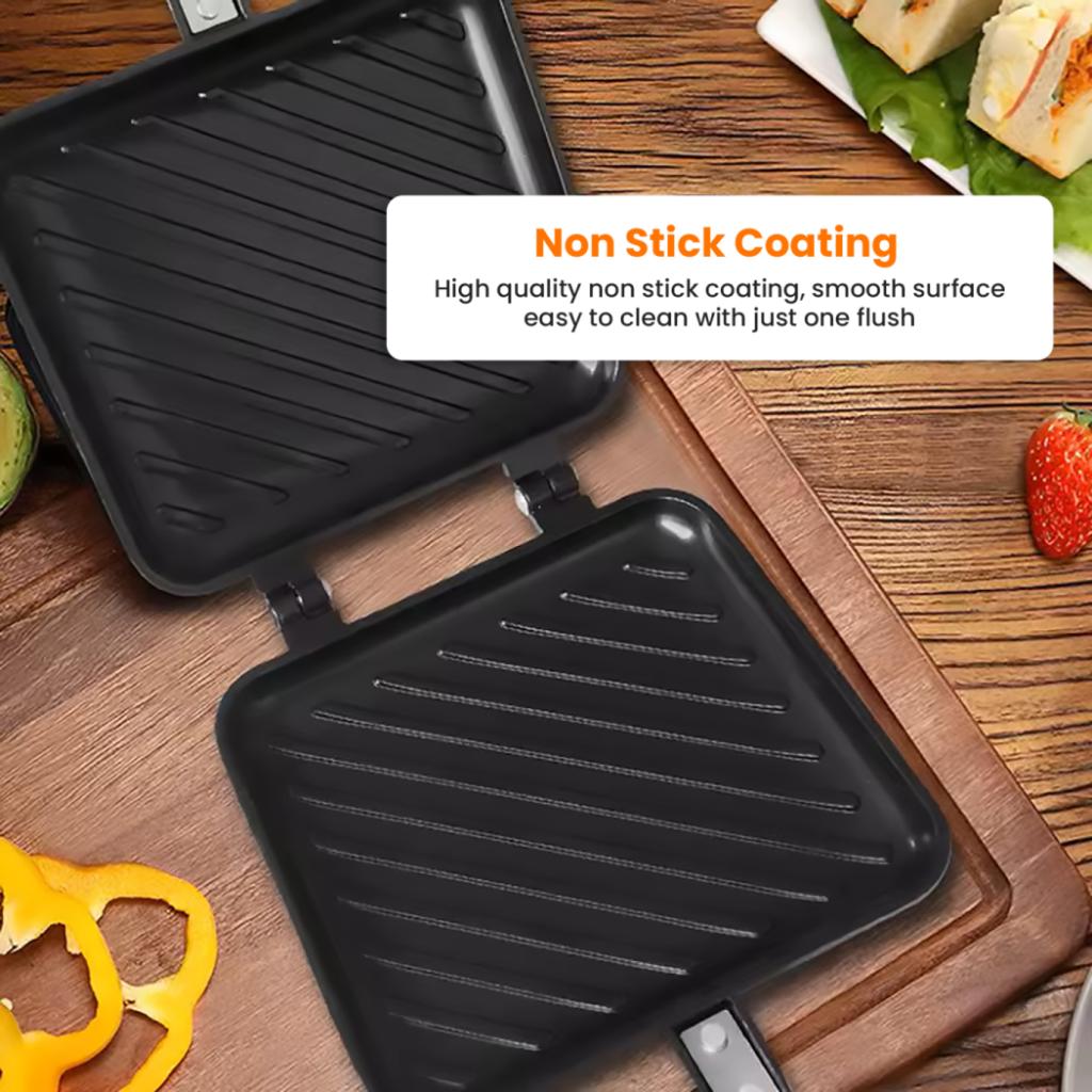 METAWELL Cetakan sandwich maker double pan alat panggang roti panini kompor grillpan anti lengket