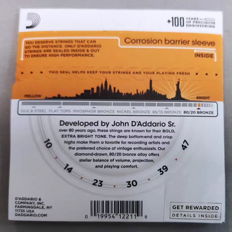 Senar Gitar / Senar Gitar Listrik Klasik/D'Addario EJ10 Akustik String 80/20 Bronze Senar Gitar Acoustic Senar Gitar Aku