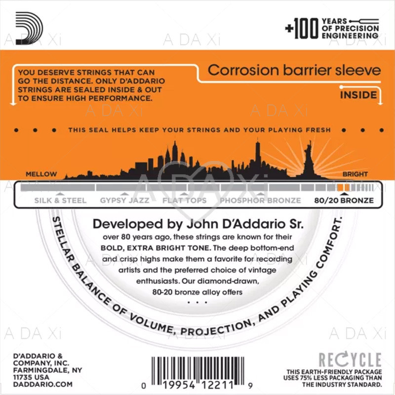 Senar Gitar D'Addario EJ10 80/20 Bronze Aksesori Gitar Akustik Folk / Senar Gitar / Senar Gitar Listrik Klasik Satu set