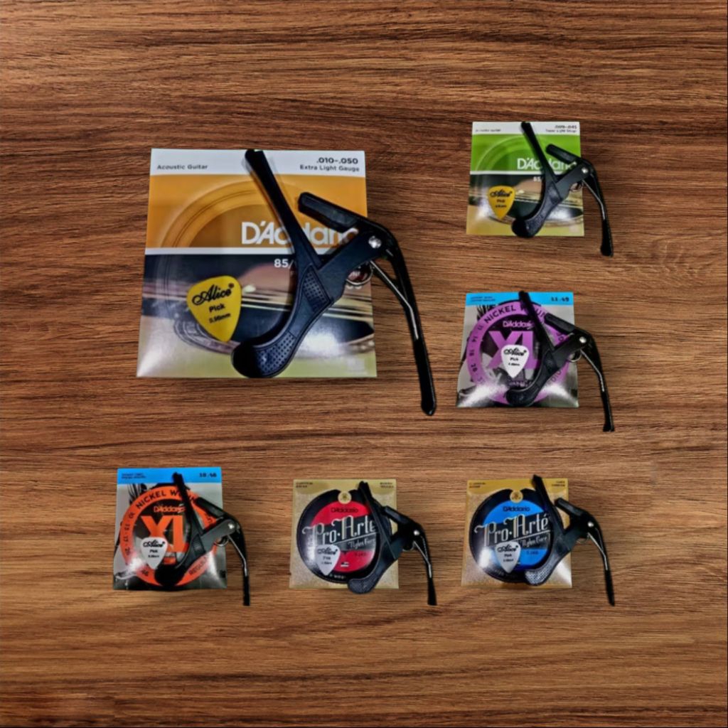 Senar Gitar Akustik/Eletric/Nylon Dadario [1set +Capo+Pick]