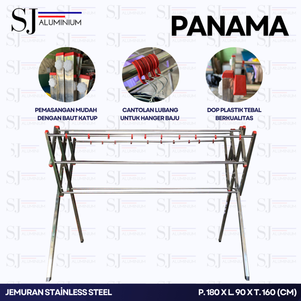 [Star] JEMURAN BAJU STAINLESS STEEL JUMBO JEMURAN PAKAIAN RAK HANDUK PALANG 9 TAHAN BEBAN 100 KG UKURAN 180 CM