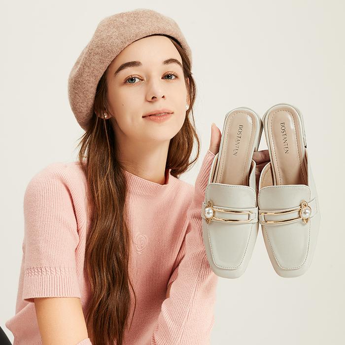 Bostanten Sepatu Hak Tahu Sepatu Mules Flatshoes Heels - Hitam, 38