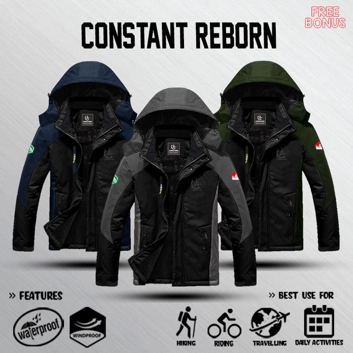 Jaket Gunung Outdoor Pria Bahan Import Waterproof Original - Rbn Abu X Hitam, M