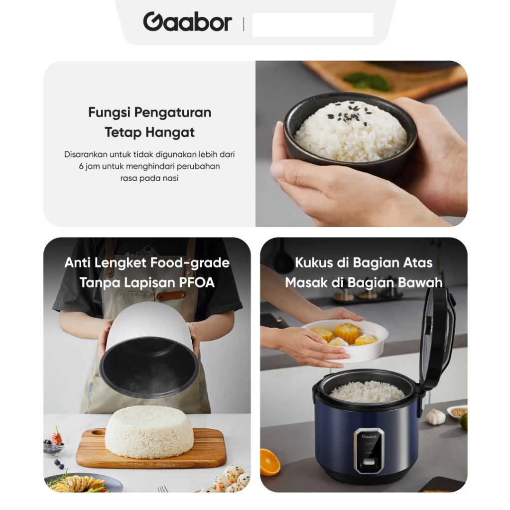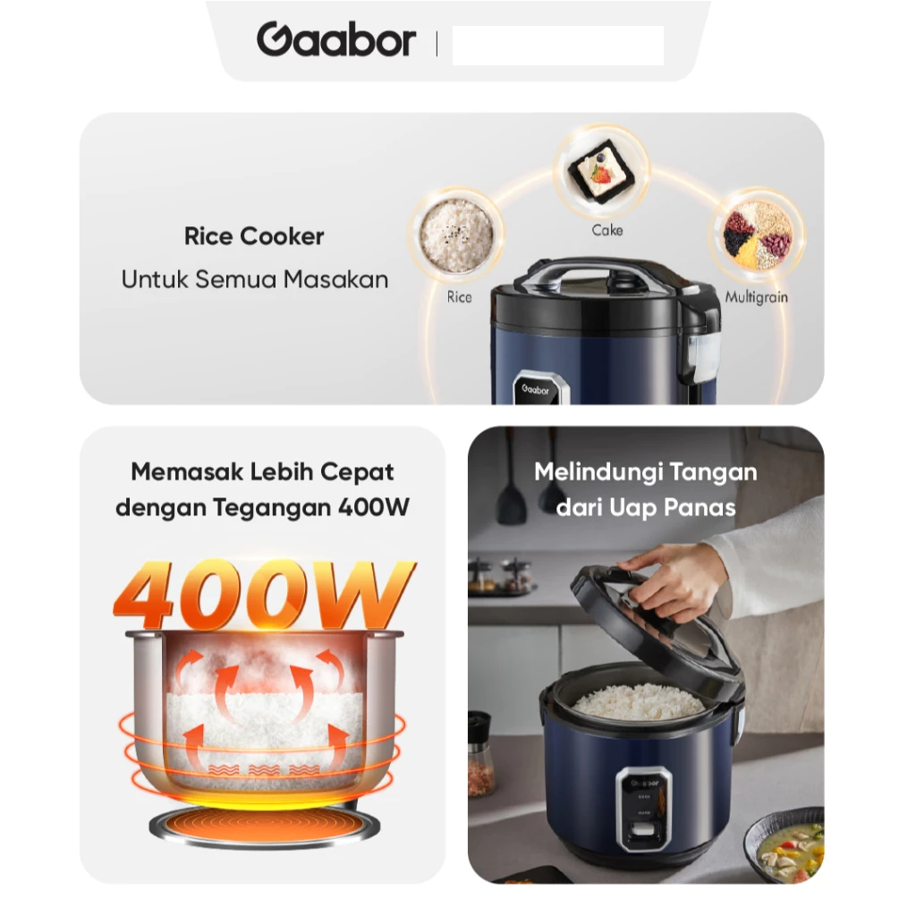 Gaabor Rice Cooker Magic Com 400W 2.2L Serbaguna Anti Lengket Penghangat Nasi / RC50M BE01A