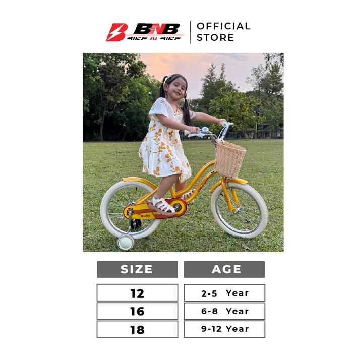 BNB ( BIKE N BIKE ) - SEPEDA ANAK PEREMPUAN USIA 3 - 9 TAHUN CTB RUBY UKURAN 12 16 18 INCH BAN 2.125 - BLUE, 12 INCH