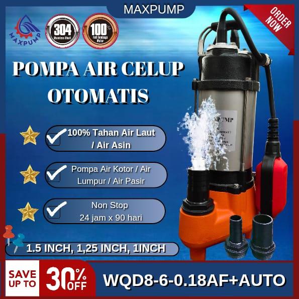 MAXPUMP WQD8-6-0.18AF+Float Pompa Celup Air Kotor Lumpur Pasir Air Asin Otomatis 24 Jam Non Stop 1.5inch 1inch 2.5inch