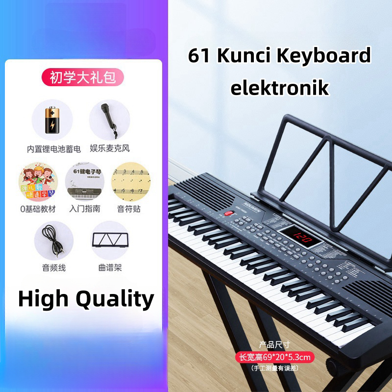 【LOWEST-PRICE】61 Keys Electric Piano / Dengan Mikrofon dan Adaptor Electronic Learning Keyboard / Organ Elektronik Untuk