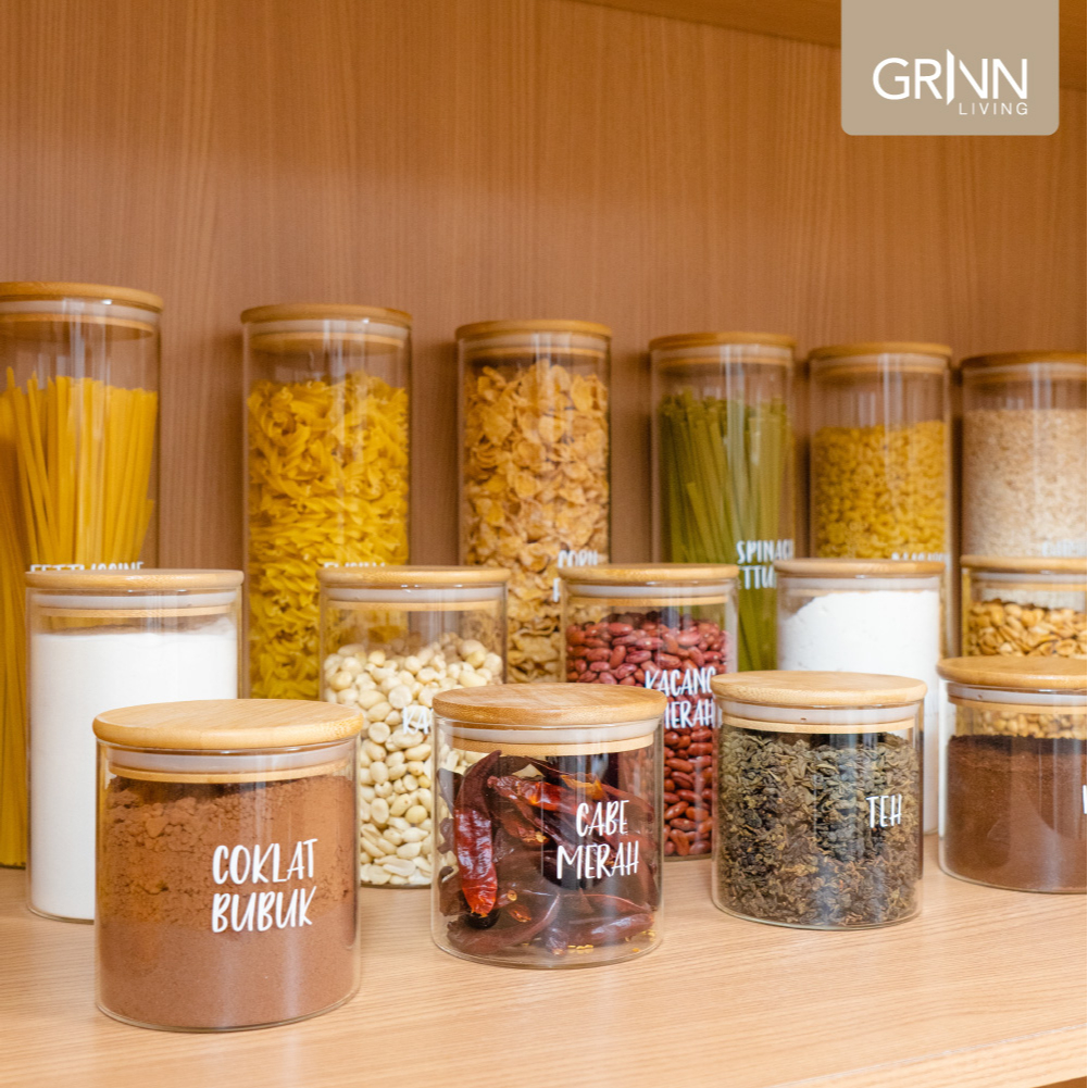 GRINN LIVING Neron Glass Jar Mini / Toples Kaca Tutup Kayu Bambu /Toples Bumbu Dapur Garam Aesthetic