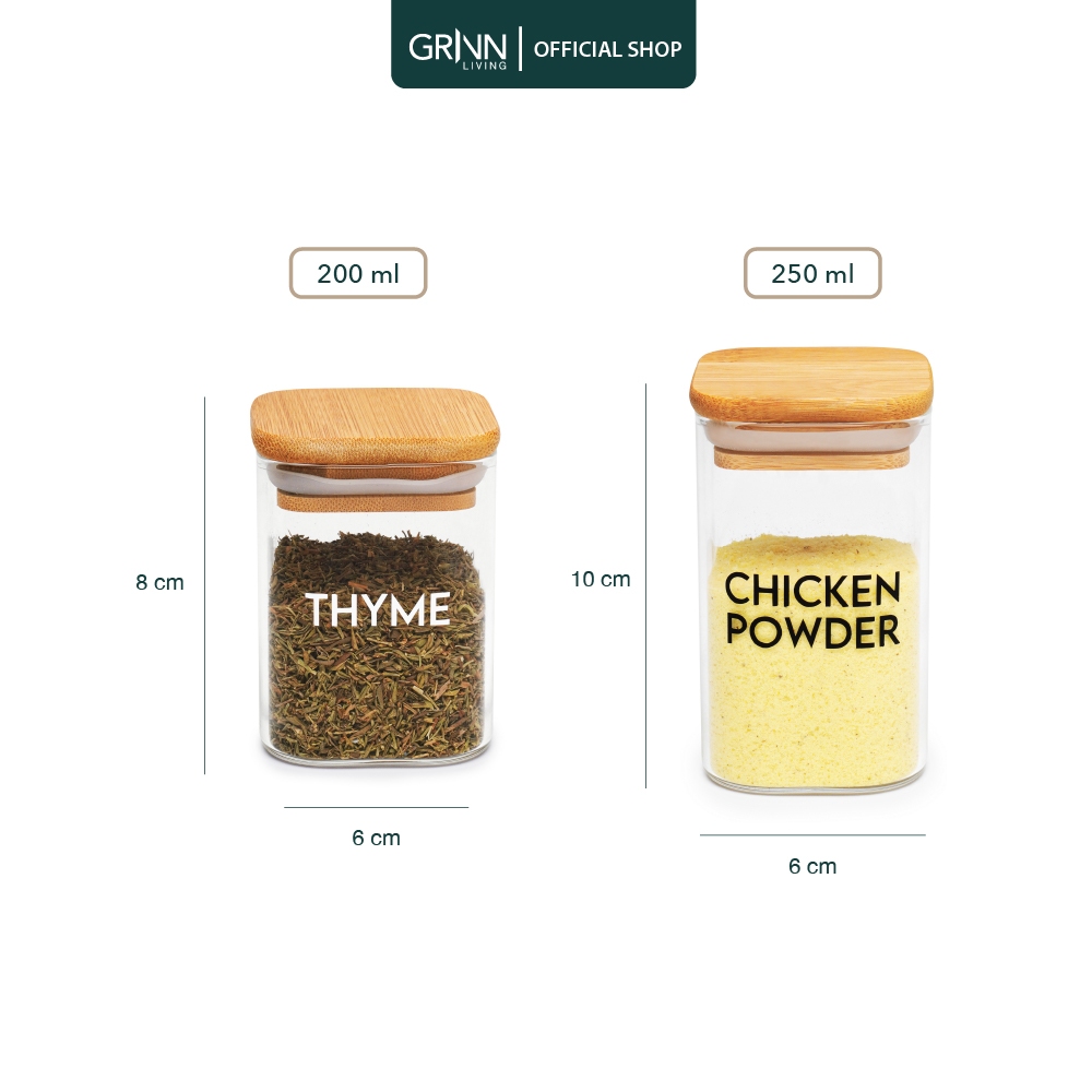 GRINN LIVING Terra Jar / Toples Kaca Kotak /Tutup Kayu Bambu /Toples Bumbu Dapur Seri Mini Aesthetic