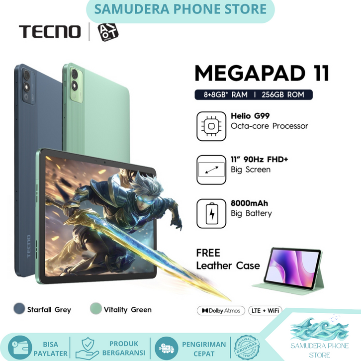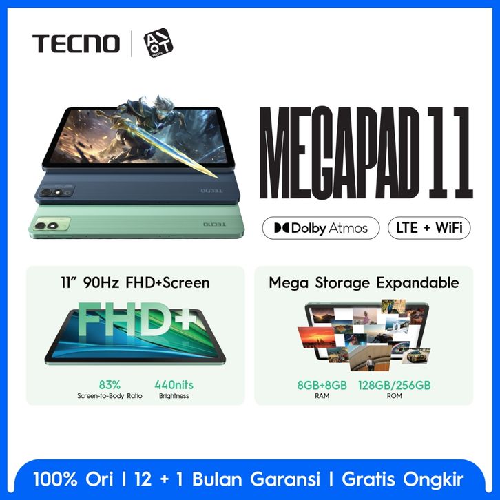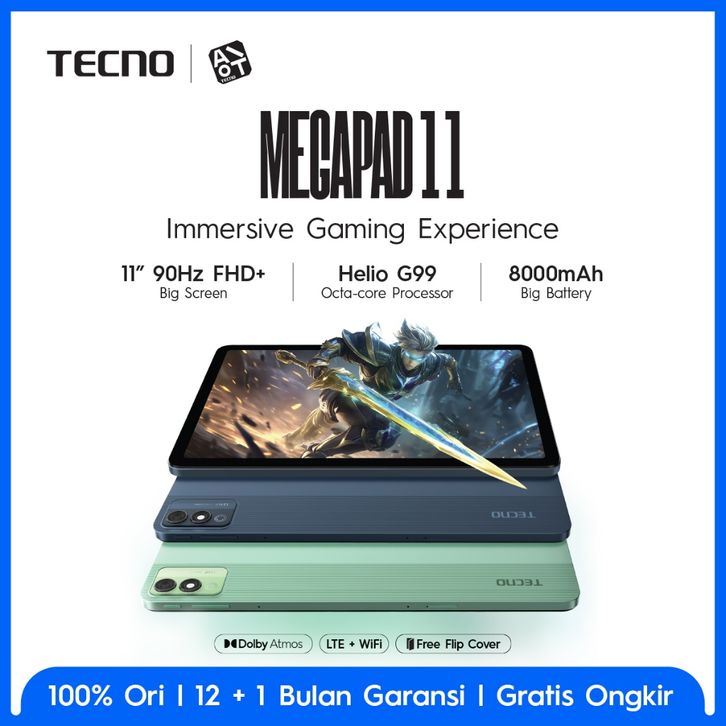 TECNO MEGAPAD 11 8+8GB 256GB 11inch Ultra Screen with Eye Care Mode Sim Card + T-Flash 8000mAh 18W Fast Charging
