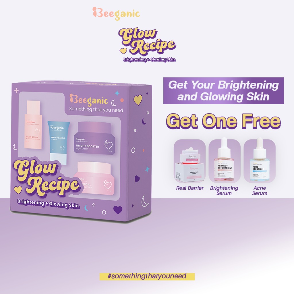 SKINCARE BEEGANIC GLOW RECIPE SERIES BRIGHTENING AND GLOWING SKIN SET 4 PCS MENCERAHKAN & MENGHILANGKAN BEKAS JERAWAT