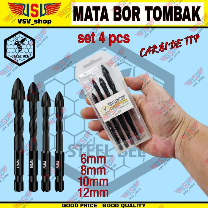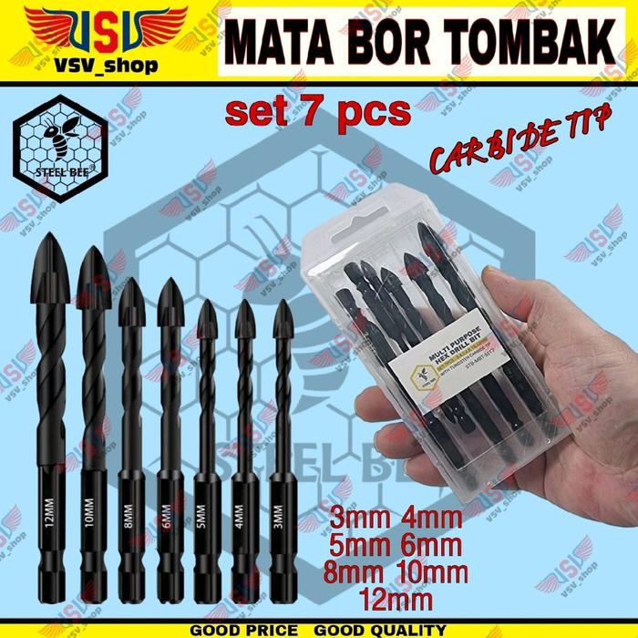 Mata Bor Keramik Granit Tembok Kaca Multi Fungsi Set Mata Bor Tombak Steel Bee