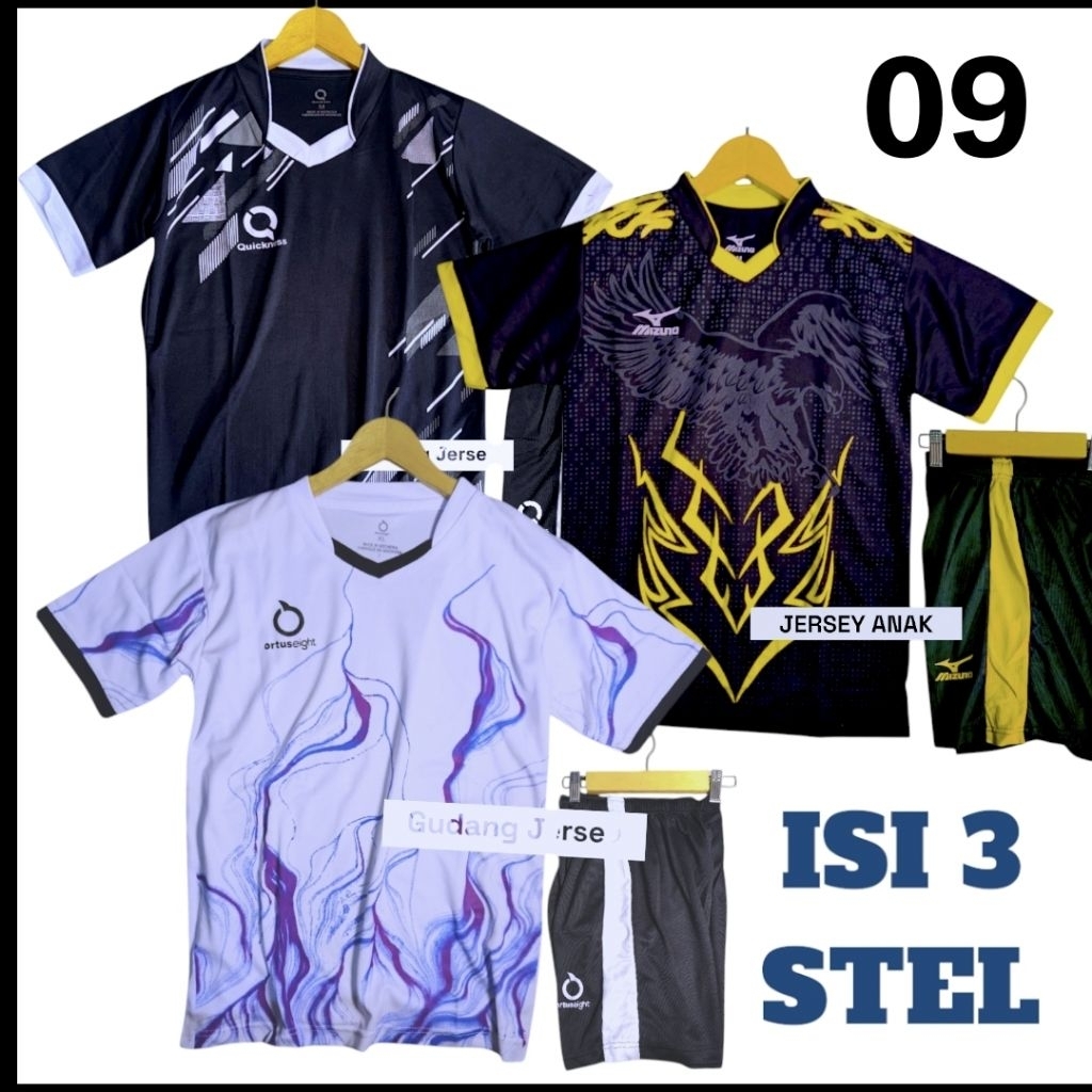 PAKET HEMAT 3 STEL Baju futsal anak Kaos olahraga jersey junior usia 5-13 tahun