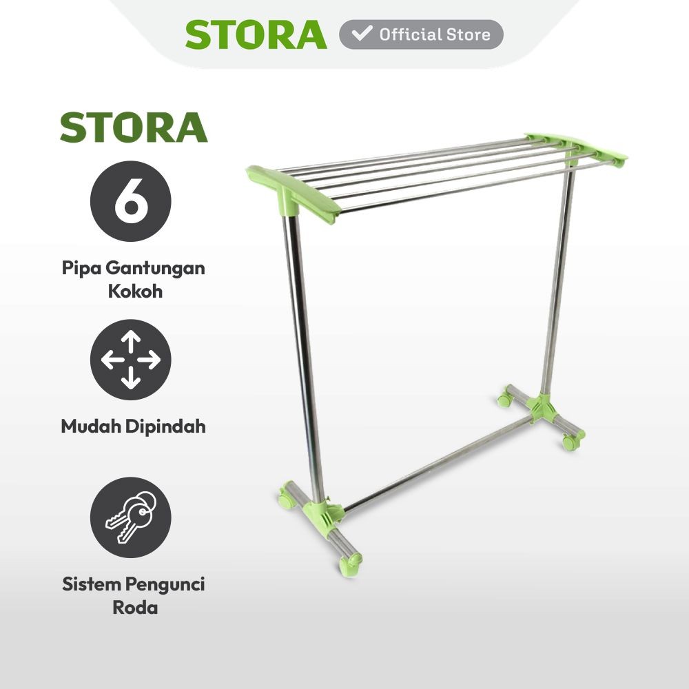 Jemuran Handuk Indoor 6 Pipa - Hijau Tempat Jemur Anduk Drying Rack Gantungan Lap Mandi Towel Rack Plastik Abs