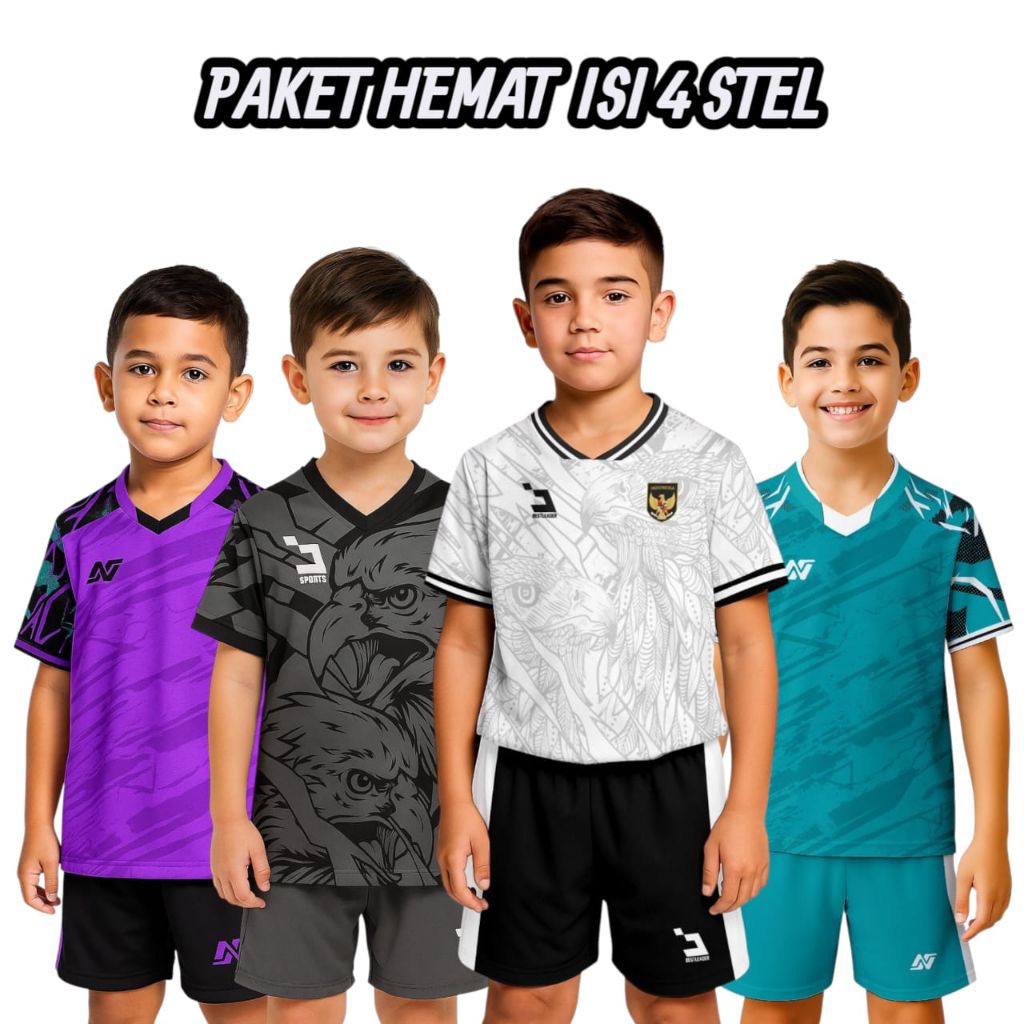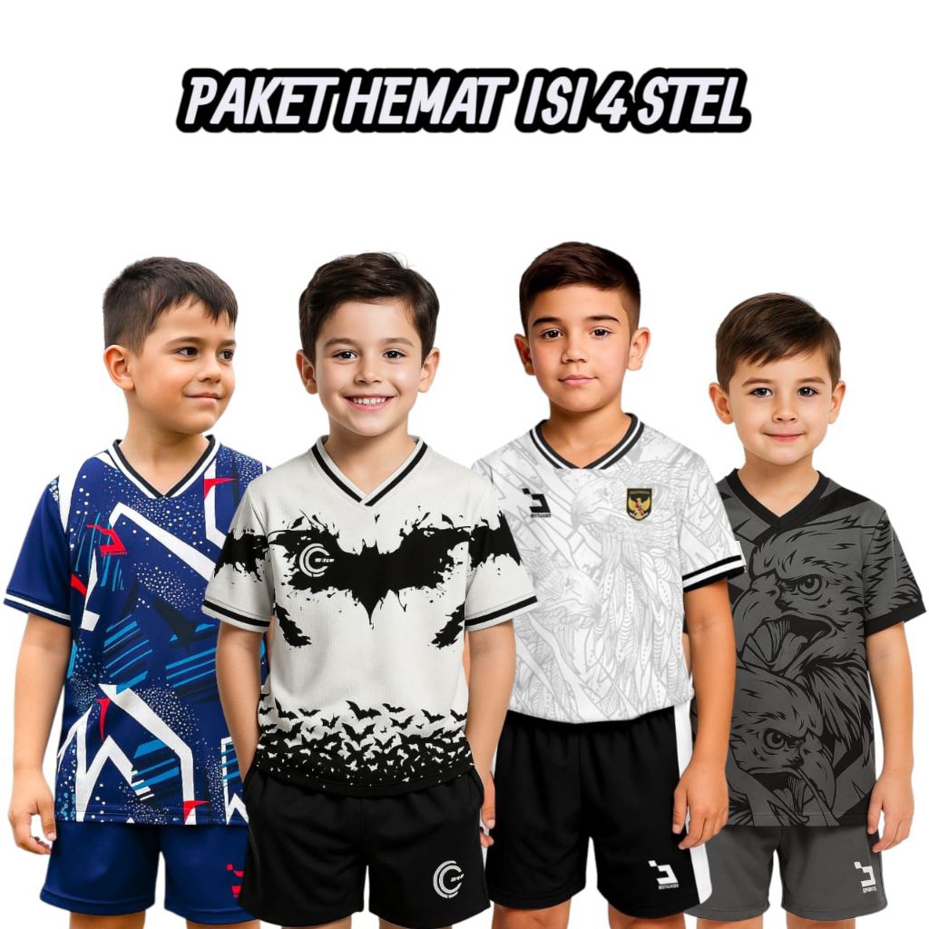 Setelan Jersey Bola Anak/Paket Murah 4 Pcs/Baju Bola Anak