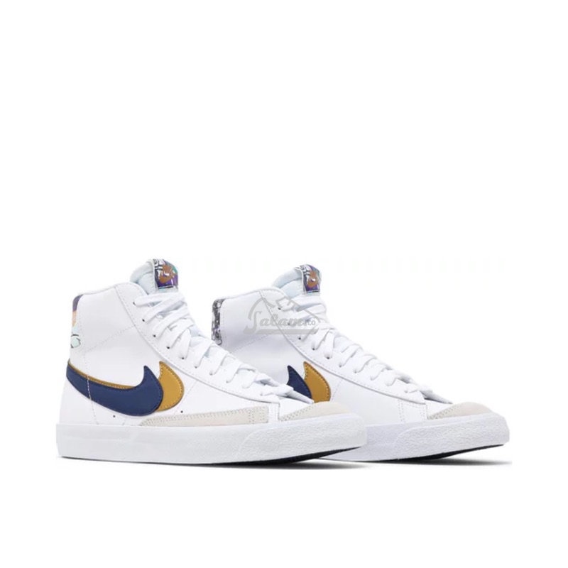 sepatu nike original pria WNike Blazer Mid '77 SE GS Double Swoosh - White Gold Blue Void nike official original store
