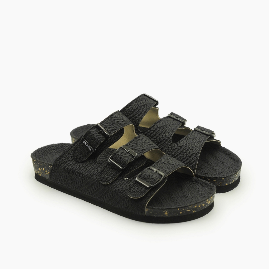 [MALL] SANDAL WANITA CEWEK SENDAL FLAT DEWASA ELEGAN KOREA KEKINIAN MURAH ORIGINAL BATIK FULL BLACK