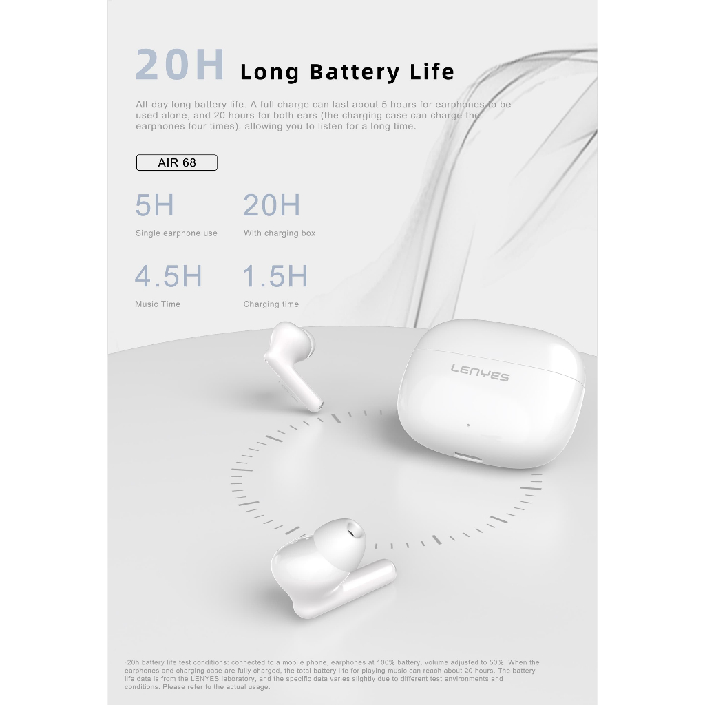 LENYES AIR 68 TWS WIRELESS EARPHONE BLUETOOTH 5.4 HEADSET SMART TOUCH HIFI STEREO EARBUDS ORIGINAL OFFICIAL STORE