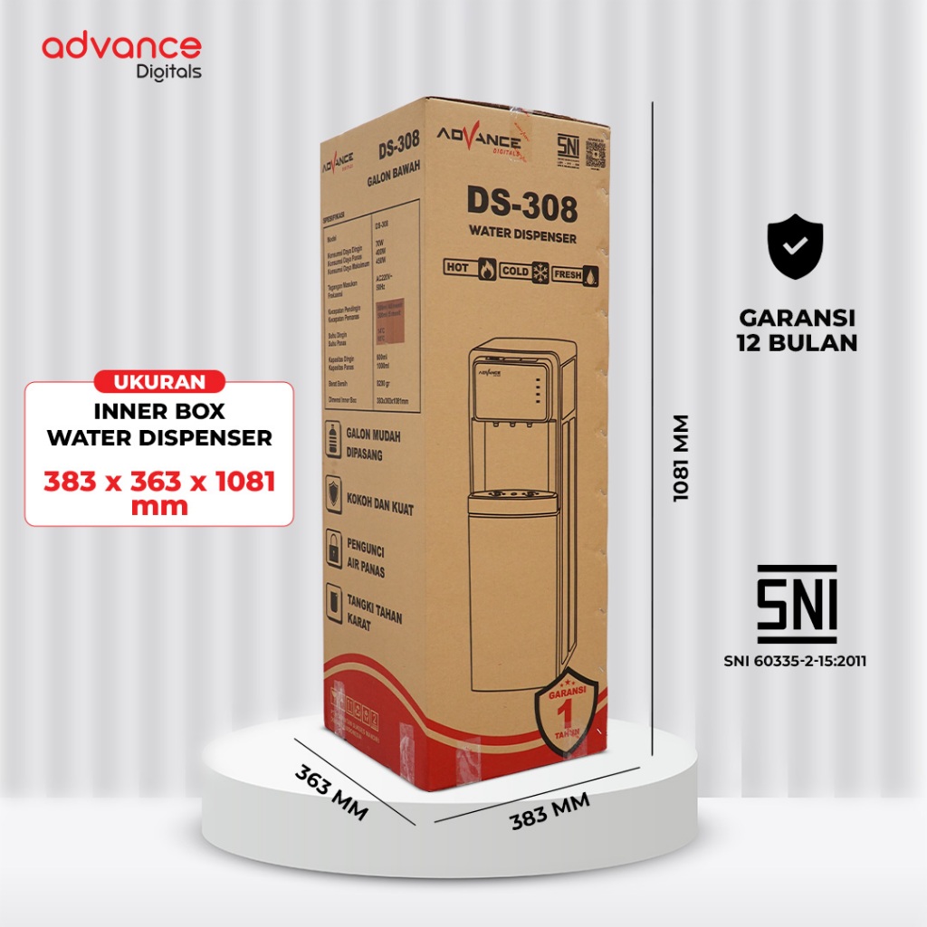 Advance Dispenser DS-308 3 Kran Dispenser Panas Dingin Es dispenser galon bawah dispenser miyako dispenser panas dingin