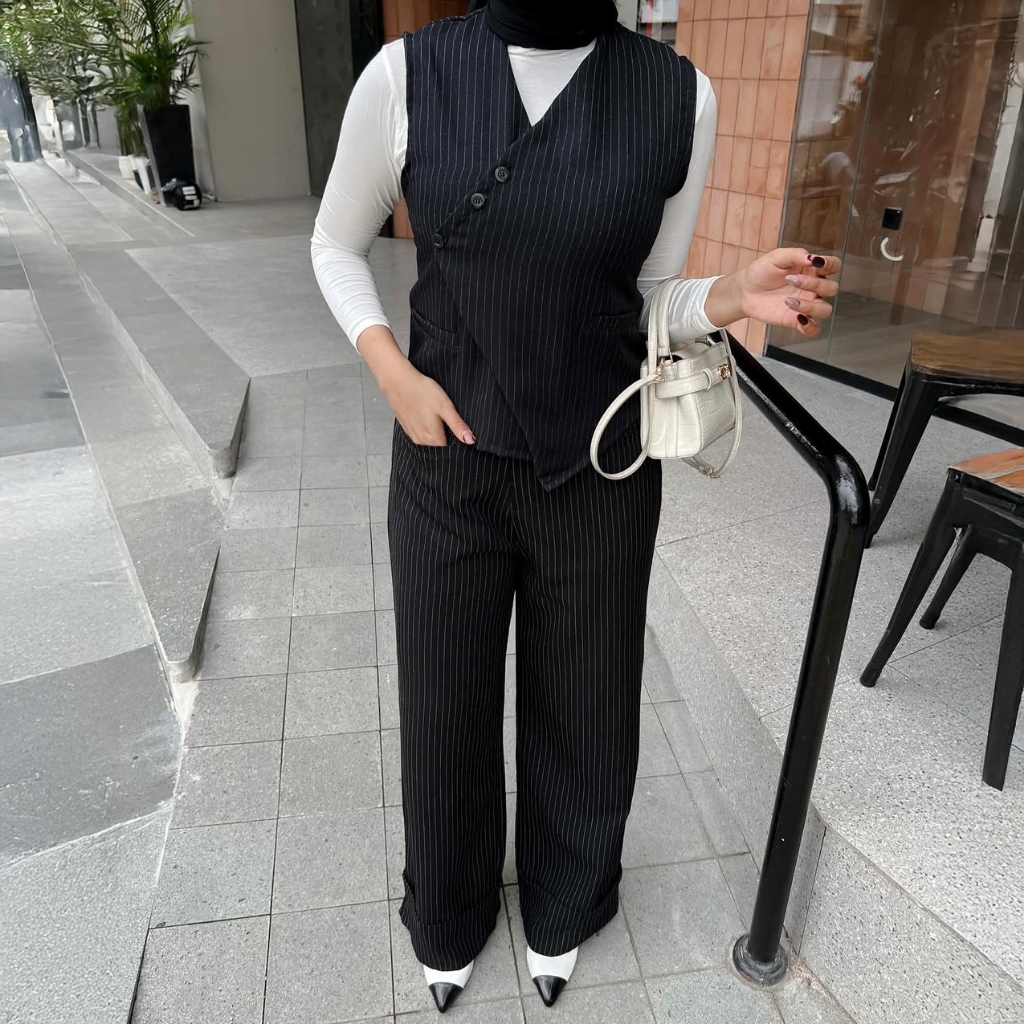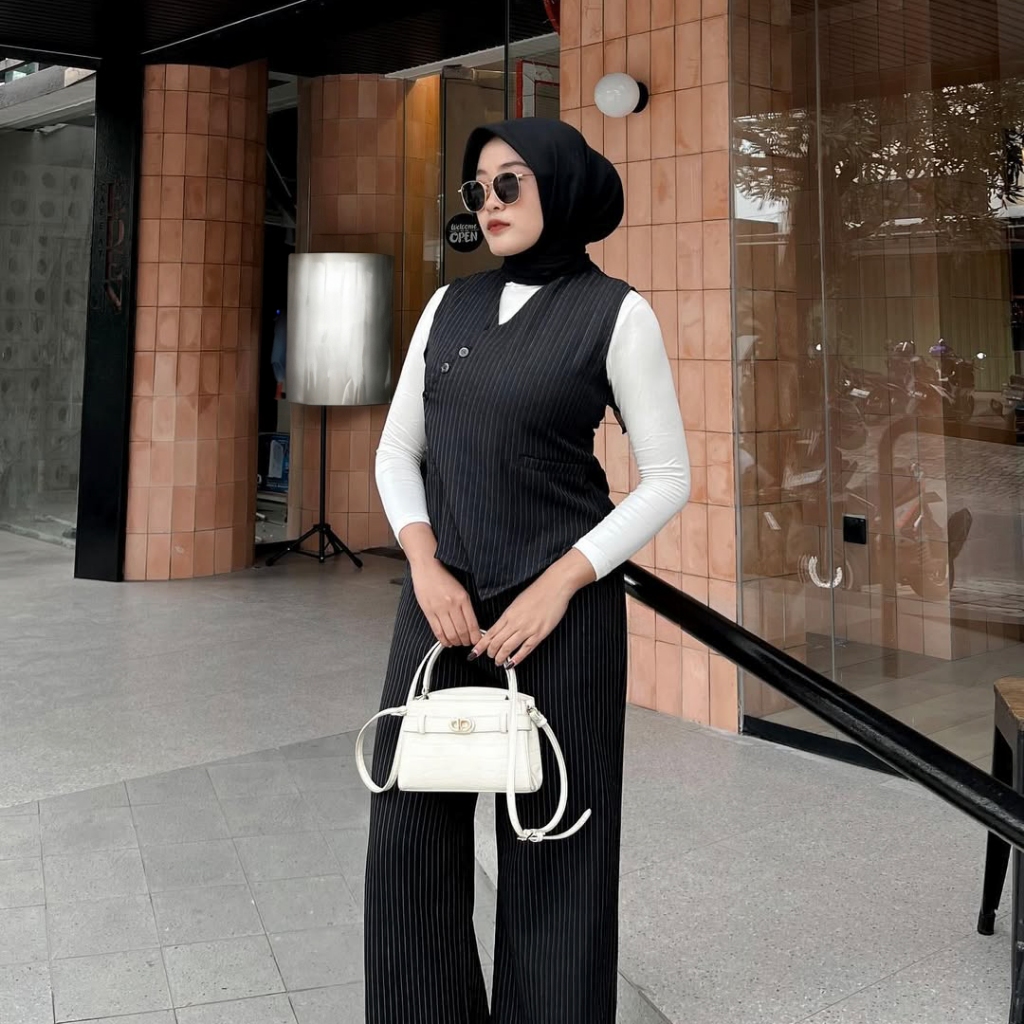 ONESET STRIPE - SETELAN STRIPE WANITA - SETELAN WANITA - VEST DAN CELANA STRIPE