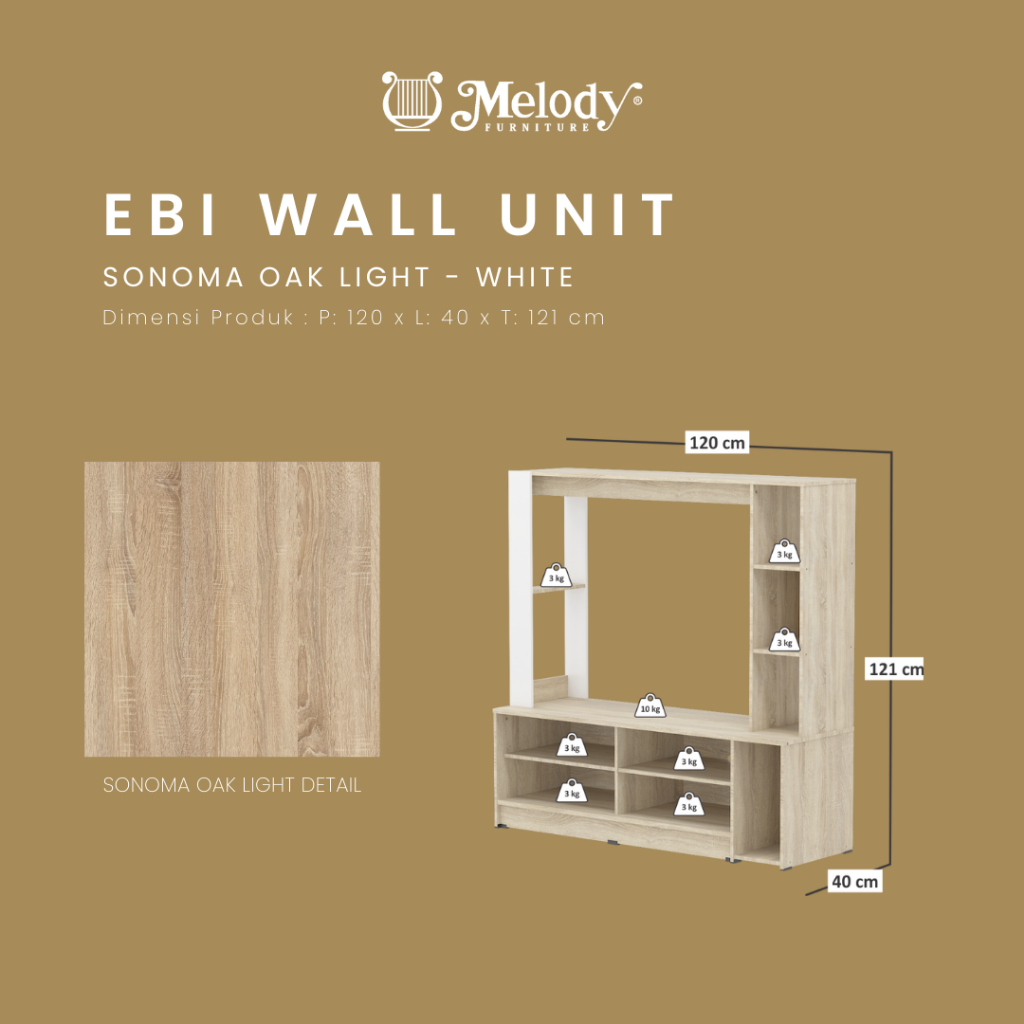 Meja Tv / Rak TV EBI WALL UNIT SOL - WHITE Gratis Ongkir