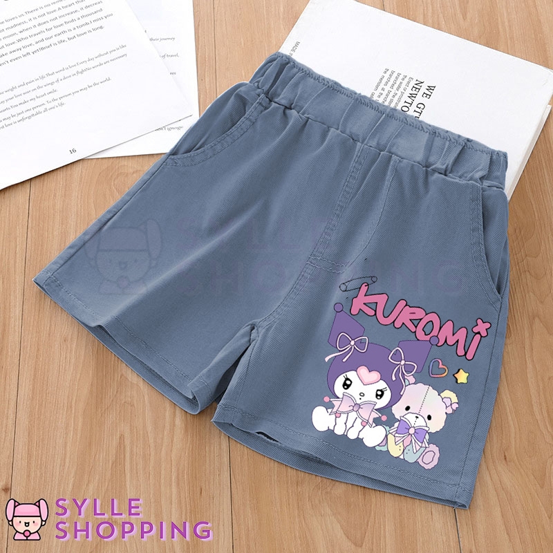 Sylle - ( 9.9 Super Shopping Day ) Celana Motif Jeans Anak Perempuan Cewe Motif Imut Kuromi Celana Pendek Kasual Harian