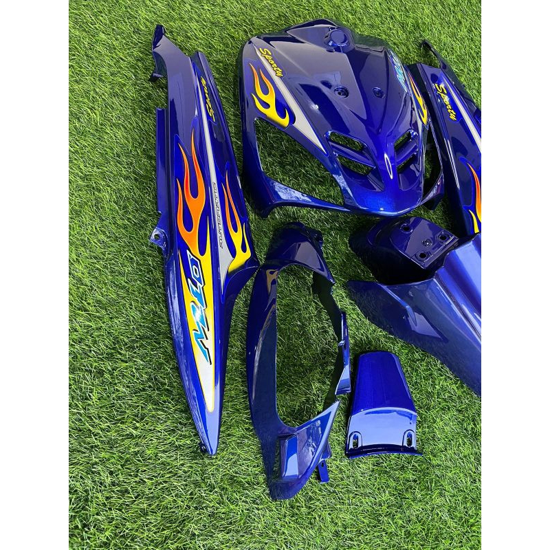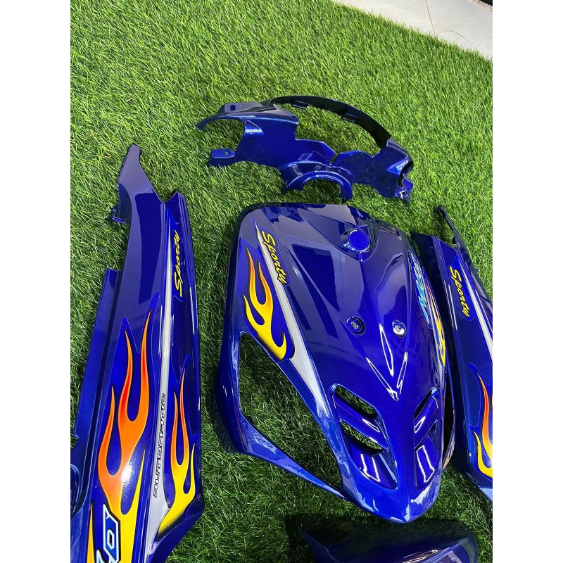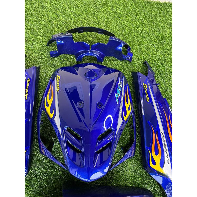 Cover full body halus Yamaha mio sporty warna biru plus striping