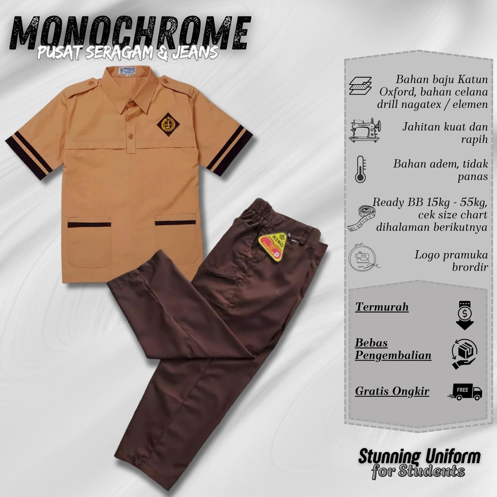 Setelan Pramuka SD SMI Siaga Lengan Pendek Celana Panjang Polos Coklat Baju Seragam Pramuka Lis Coklat Tangan Pendek Kan